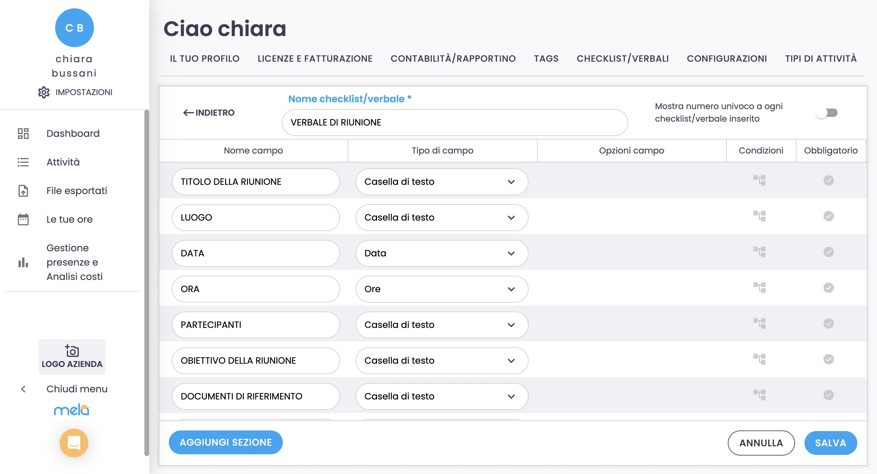 Di seguito andiamo a vedere nella pratica quanto è facile creare un verbale di riunione con Mela in poco tempo e come tale modello potrà essere utilizzato come template per tutti i verbali che farai nel tempo.
